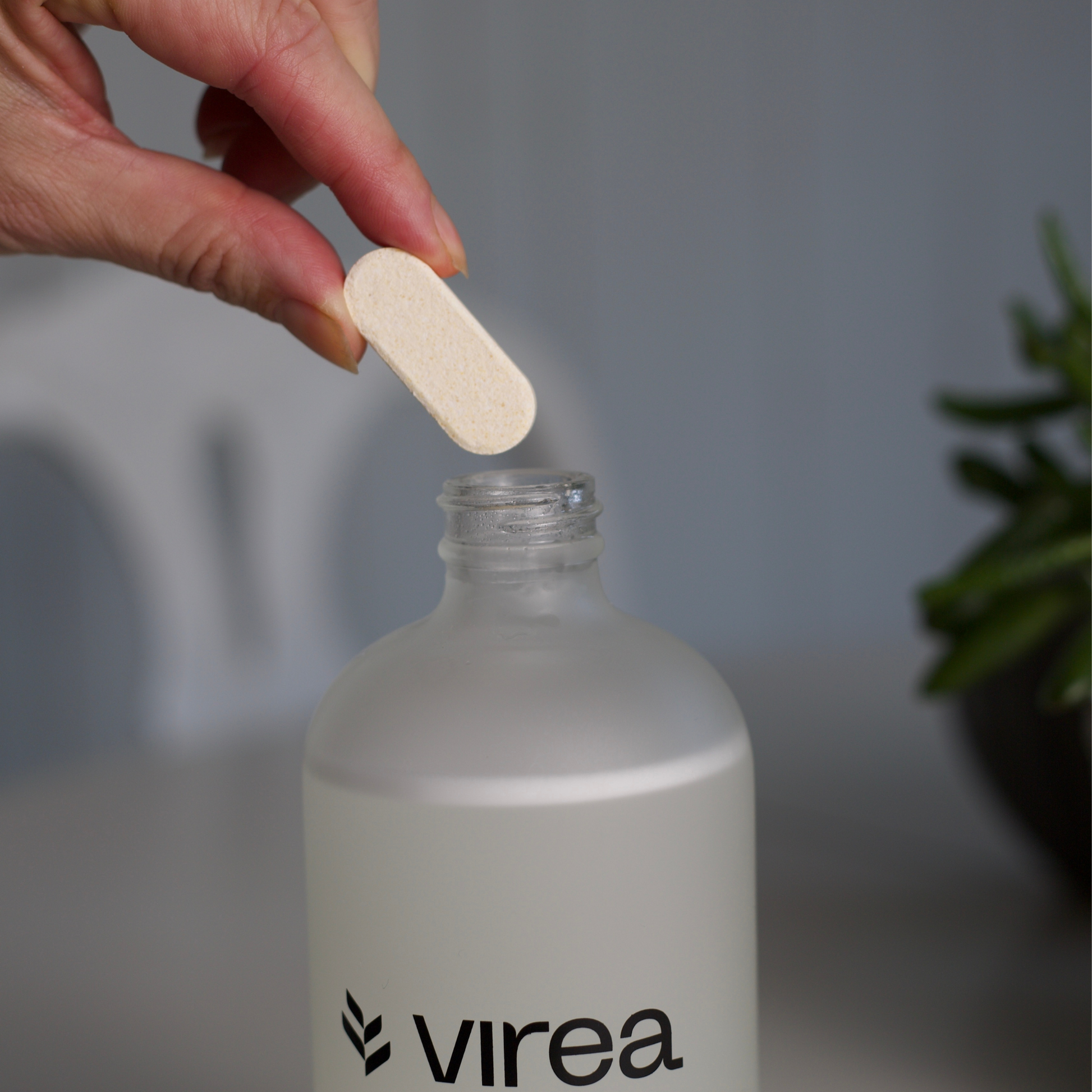 Varje förpackning innehåller 3 tabletter – vilket blir upp till tre fulla sprayflaskor med allrengöring (utan att betala för extra vatten eller plastförpackning).