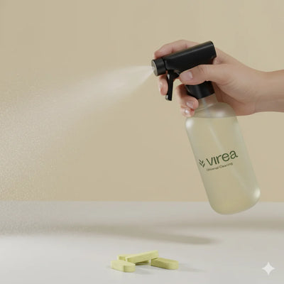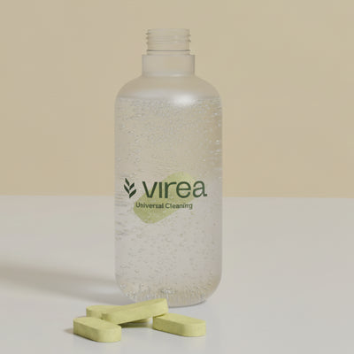 Vi skapade Virea för att visa att effektiv städning inte behöver kompromissa med hälsa eller hållbarhet. Våra tabletter löser du enkelt upp i vatten – så slipper du både plast och onödiga transporter.