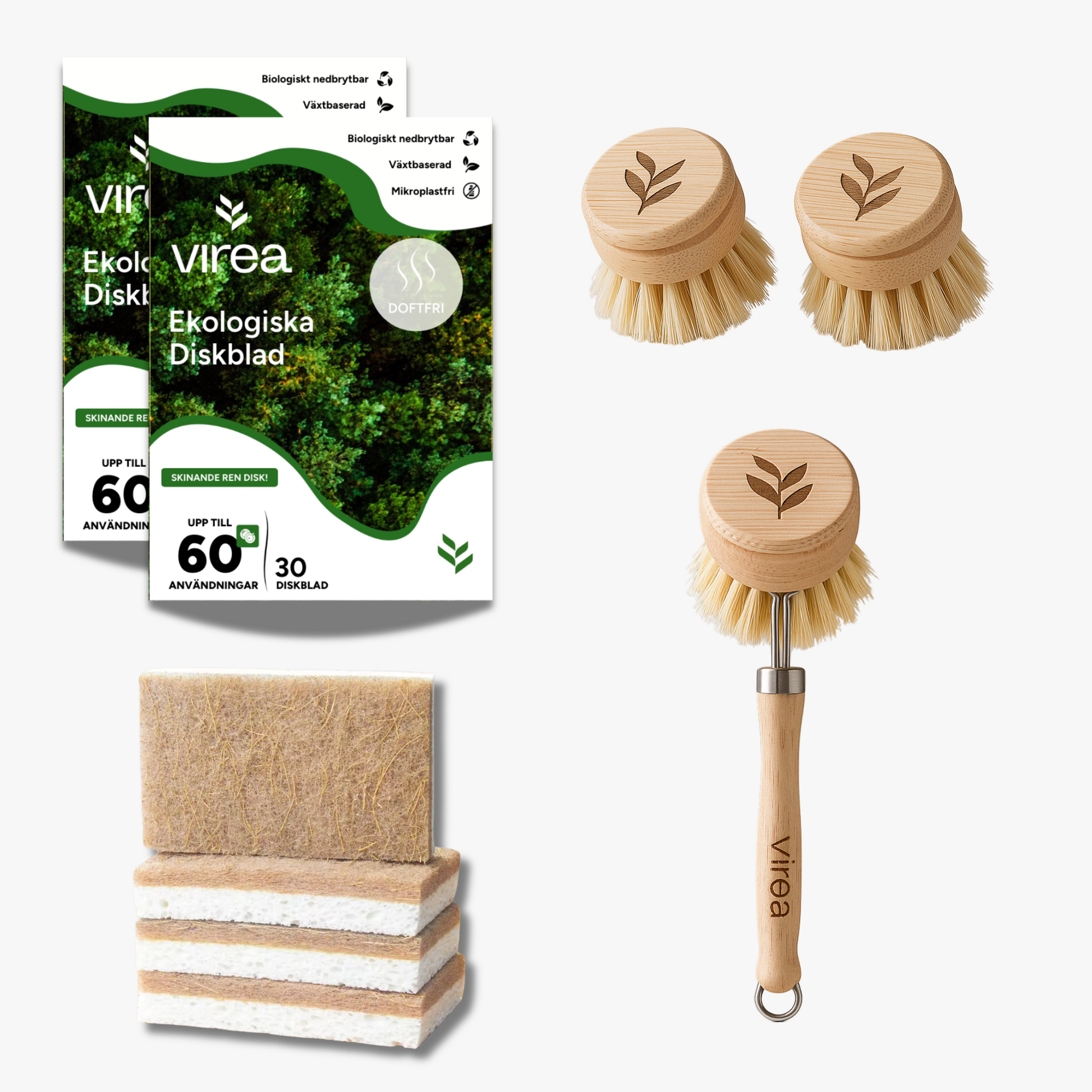 Vårt diskpaket innehåller allt du behöver för att göra disken både miljövänlig och stilren. Här får du ett komplett kit som kombinerar funktion, hållbarhet och skandinavisk design – perfekt för dig som vill ta ett enkelt steg mot en grönare vardag.