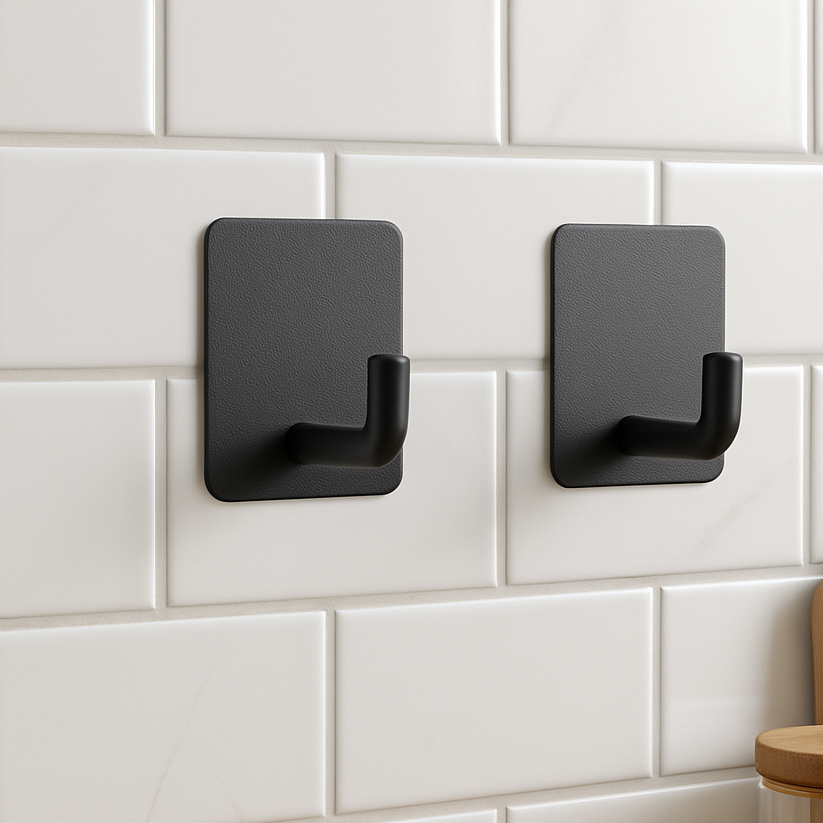 Håll ordning i köket eller badrummet med våra stilrena och praktiska självhäftande krokar! De är perfekta för att hänga upp diskborstar, handdukar eller andra mindre föremål du vill ha lättillgängliga.