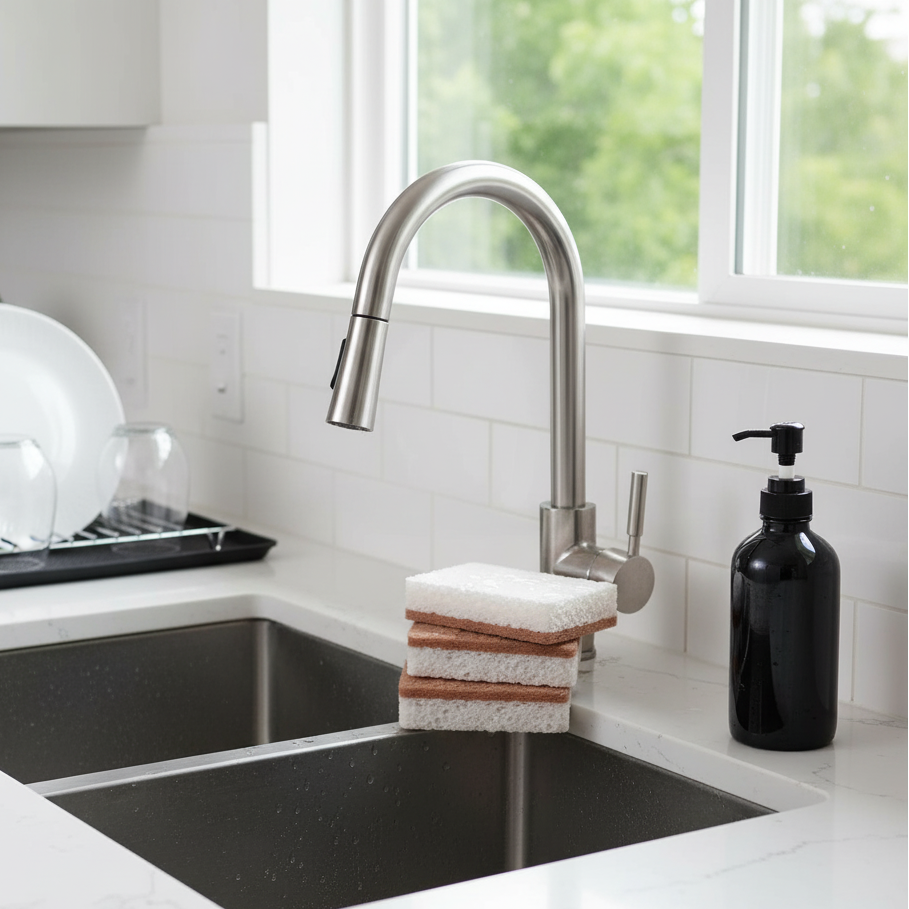 Miljövänliga svampar tillverkade av naturlig cellulosa och kokosfiber – helt utan plast.