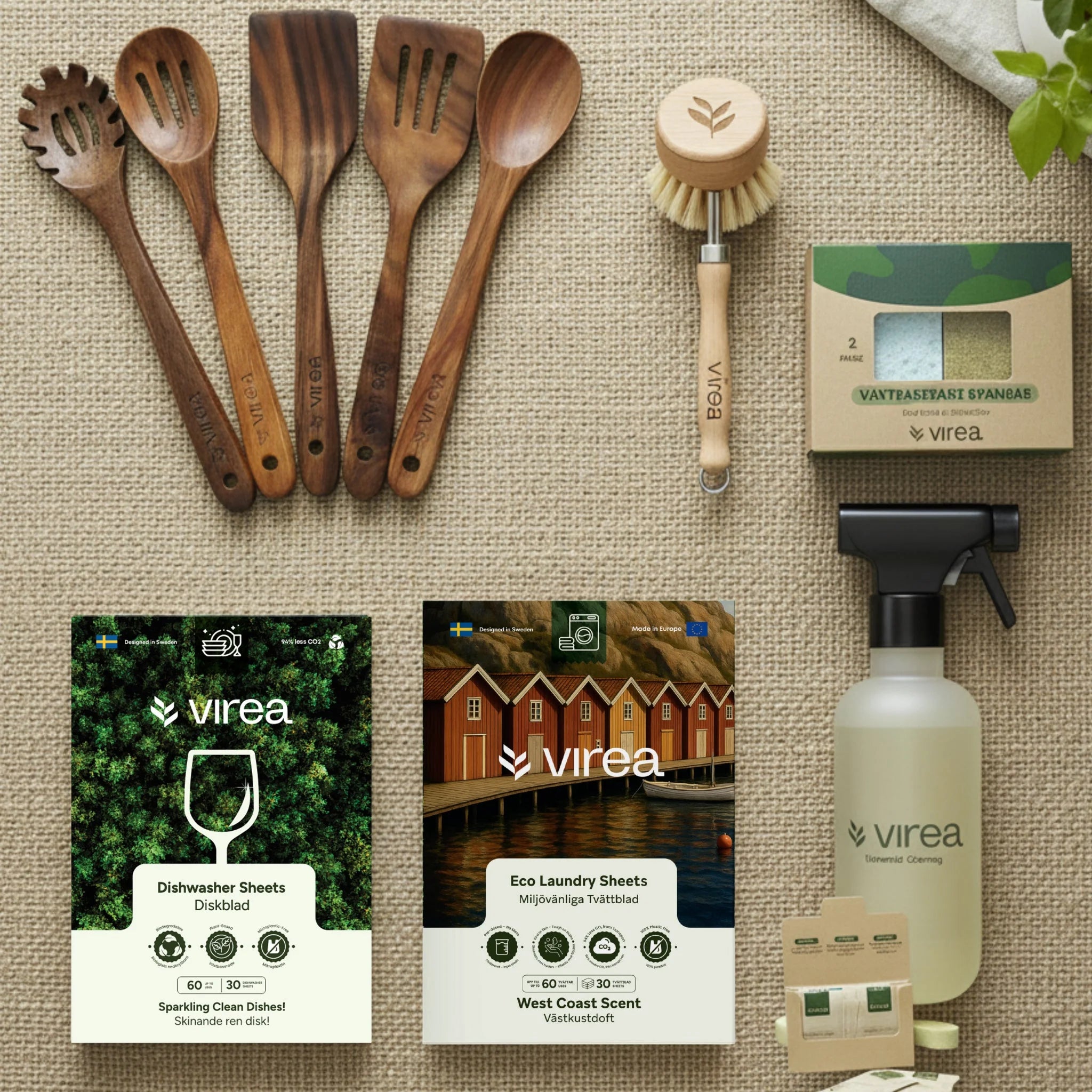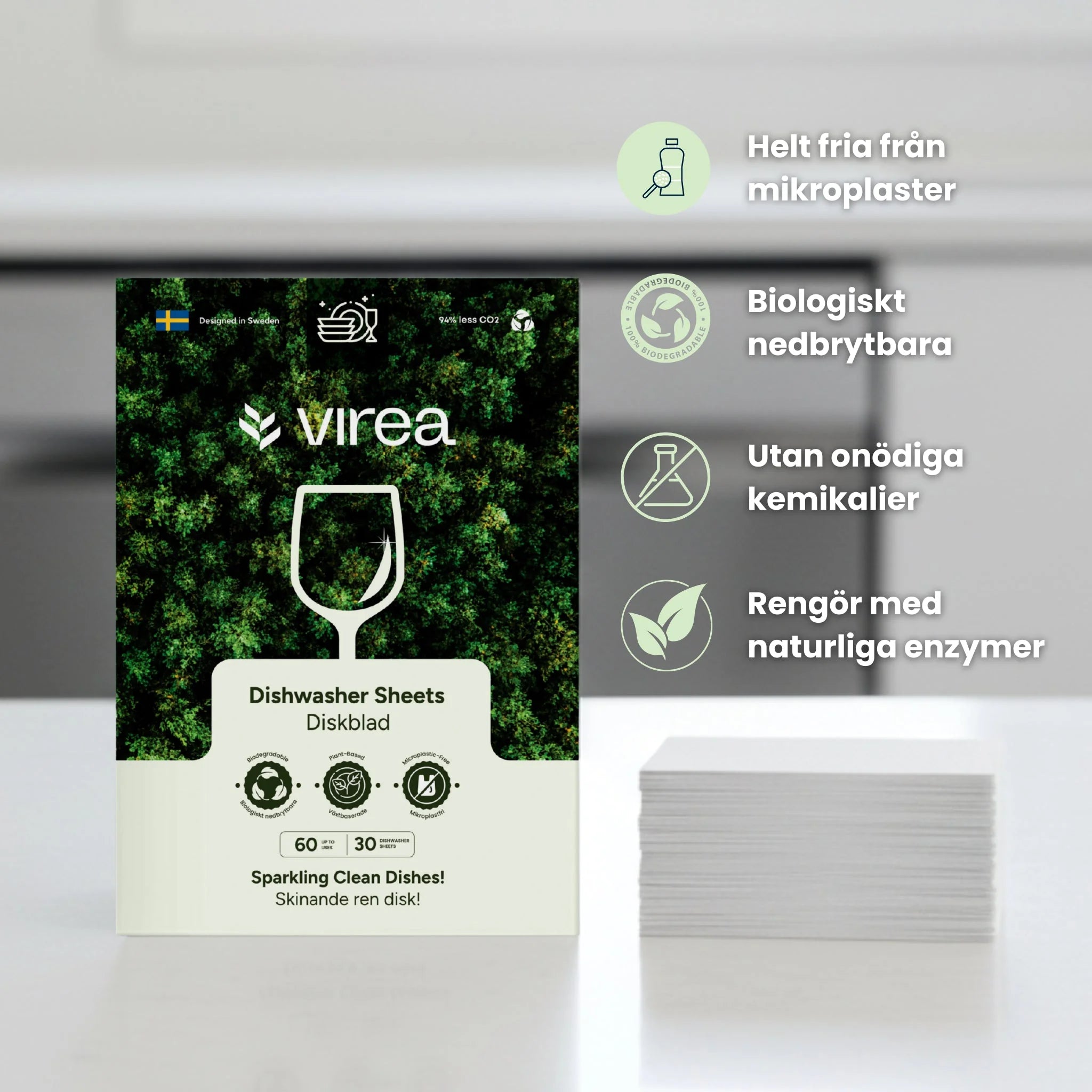 Våra diskmaskinsblad är ett mer miljövänligt, plastfritt och effektivt alternativ till traditionella disktabletter.